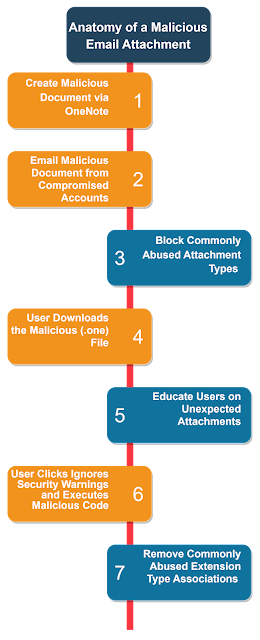 .zip,.iso, and.one, as well as common script extensions. - User receives the malicious file and proceeds to download it. Once downloaded, the file will be opened and displayed using OneNote in a manner consistent with the attackers intent; meaning, the malicious script will be hidden behind whichever image the attacker has chosen.